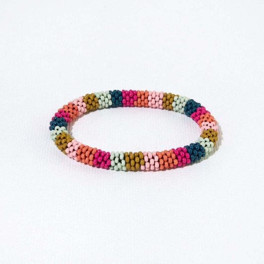Peacock Crimson Mint Colorblock Stretch Bracelet