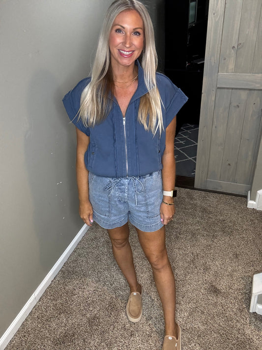 Blue Zipper Top