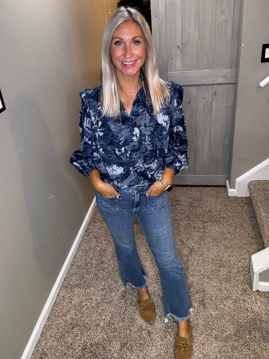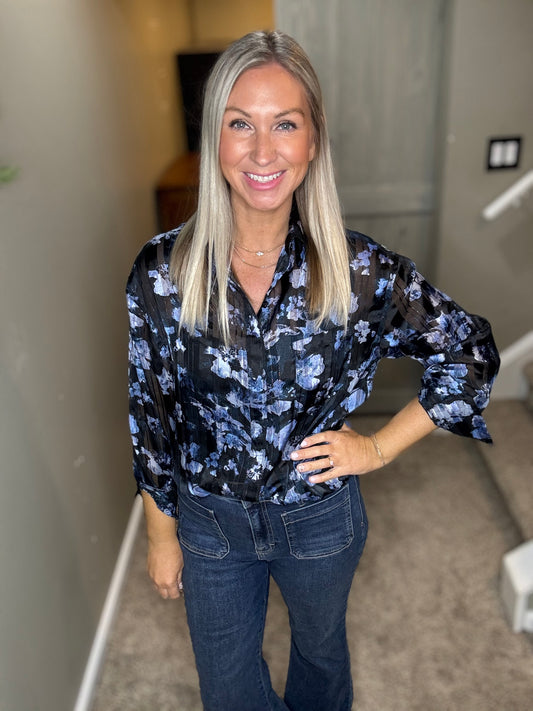 Blue Sparkle Floral Top
