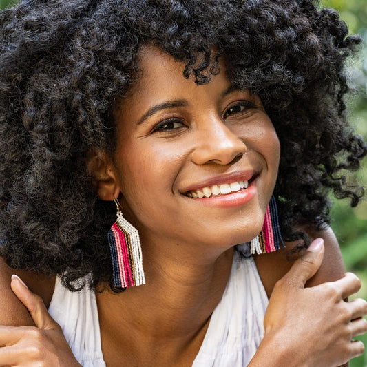 Ivory Mint Teal Navy Vertical Stripe Earrings