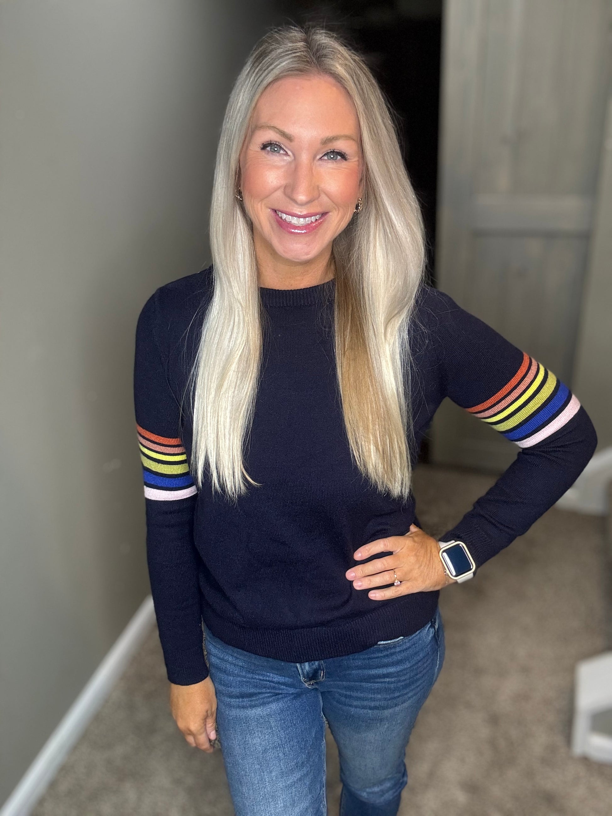 Navy Striped Sleeve Sweater